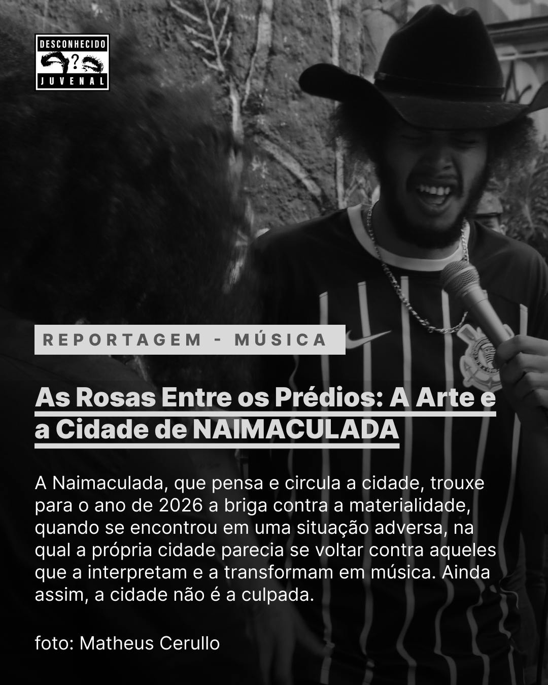 A NAIMACULADA , que pensa e circula a cidade, trouxe para o ano de 2026 a briga contra a materialidade, quando se encontrou em uma situação adversa, na qual a própria cidade parecia se voltar contra aqueles que a interpretam e a transformam em música. Ainda assim, a cidade não é a culpada.
