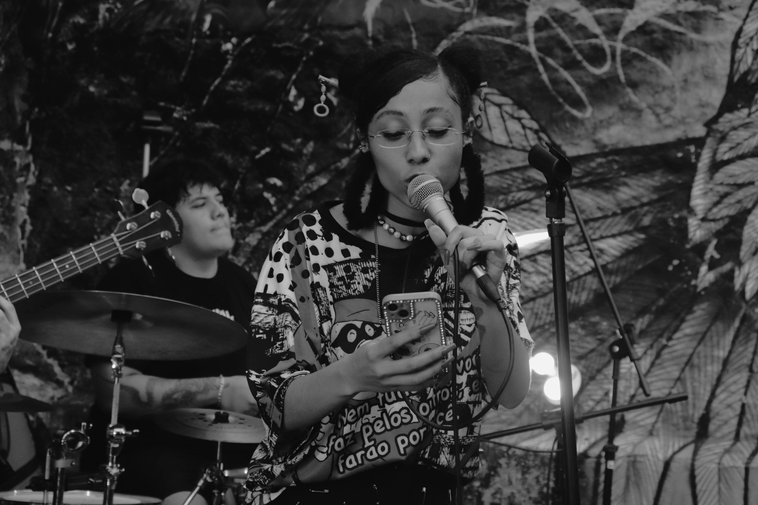 “Conheci eles, se eu não me engano, no segundo show deles, foi no Picles e eu estava lá por pura coincidência. Nesse momento em que eu vi o show deles pela primeira vez, a minha vida já mudou ali. Nenhuma das composições do álbum existiam, eram algumas coisas diferentes que estavam sendo retratadas ali. Mas, alguma coisa brilhou nos meus olhos e tem uma música que eu aguardo o lançamento, mano, há milhões de anos, chamada “Hortelã”. E eu chorei, foi uma das coisas mais bonitas que eu ouvi. Ali olhei e falei, isso é o futuro, tá ligado?”