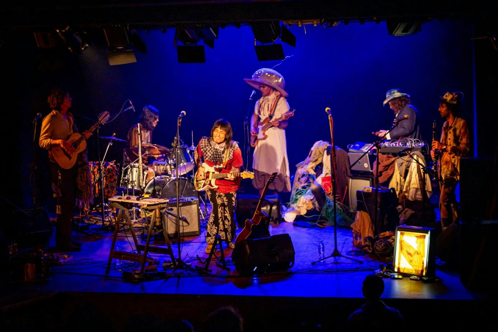 “A gente tentou trazer o universo que o Clóvis já criou, que vai aparecer aí no futuro em outras formas, mas trazer essa ambientação mesmo, pra pessoa ir para esse universo e ver esse povoado enquanto as músicas acontecem, já que a gente tá falando aqui de um musical, é um musical que acontece, é uma narrativa, tem uma história, então era muito importante que a gente não só fizesse um show, que a gente fizesse esse lugar também né”, nas palavras de Bettina.