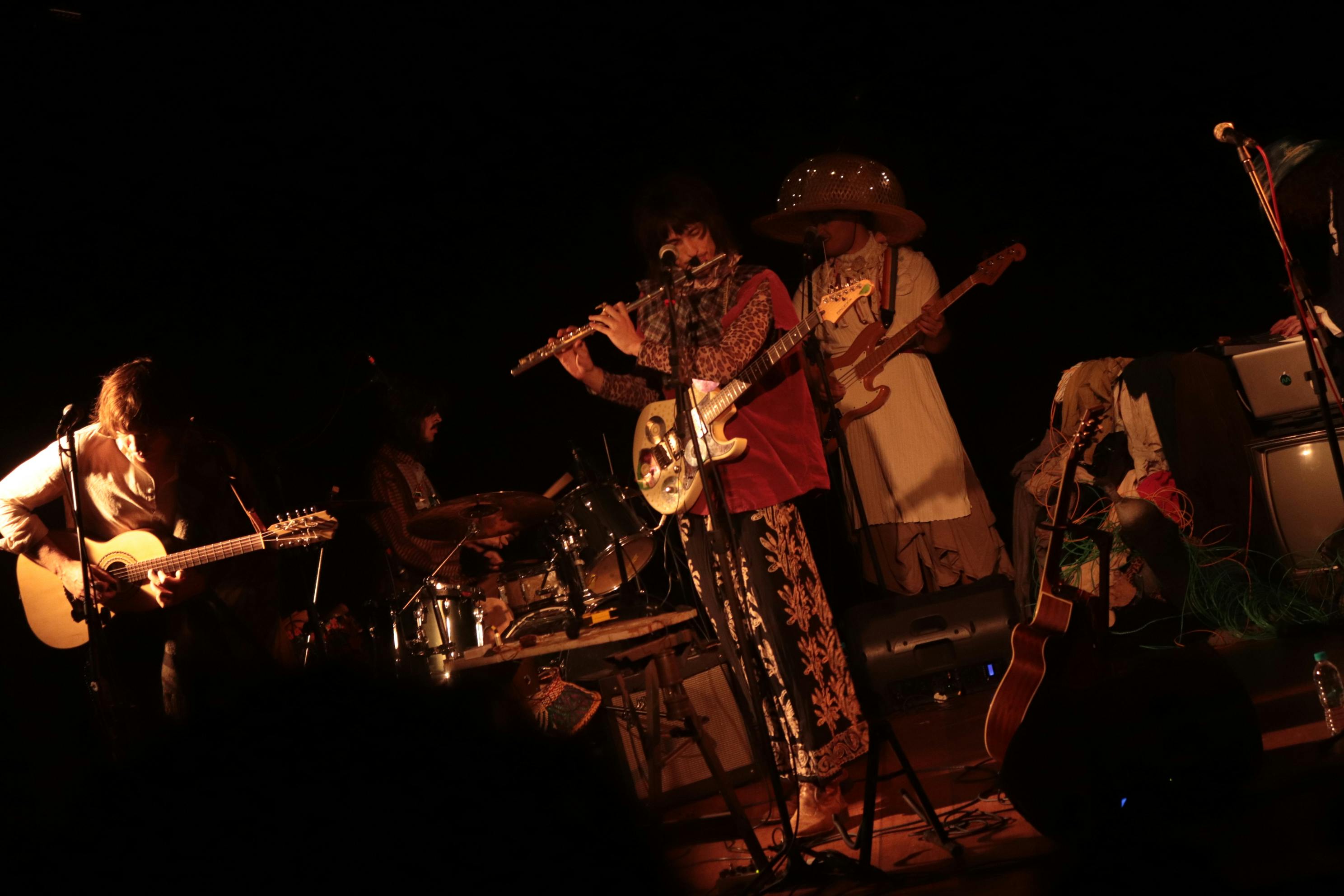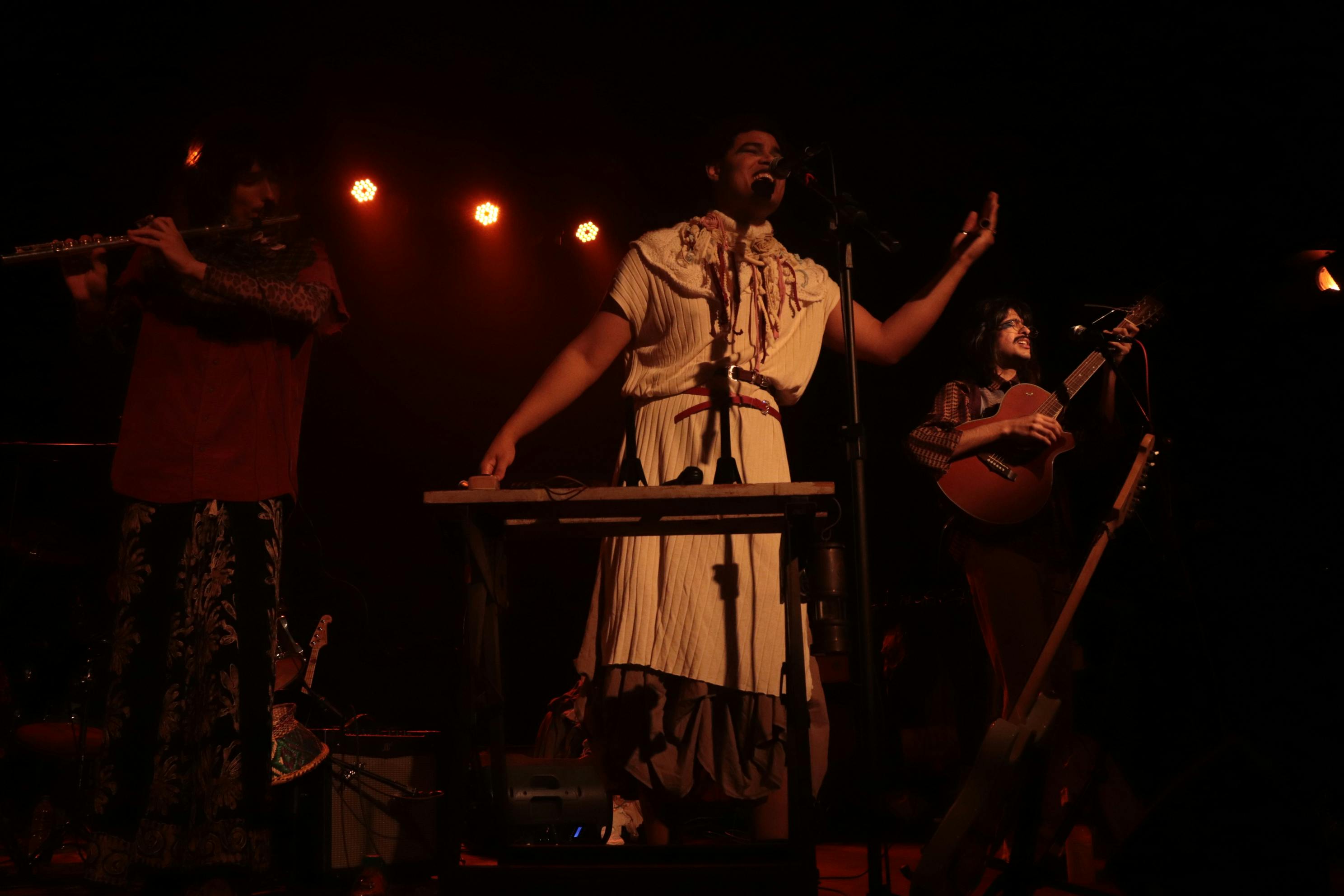 Clóvis flutuava entre a guitarra e a flauta transversal durante a apresentação. Foto por: Matheus Cerullo.