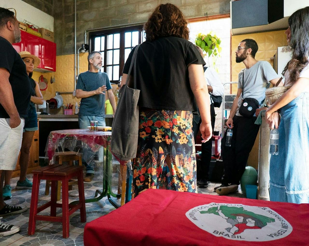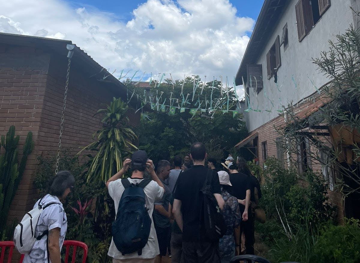 O coletivo é formado por diversos artistas, que atuam nos mais diversos tipos de mídia. Juntos, eles constroem esse polo de condução cultural e de autogestão. Todos moram ali, distribuídos em cinco casas, para as quais fomos convidados a entrar. Uma vez dentro, ouvíamos as histórias dos moradores e comentários sobre a arquitetura do projeto.
