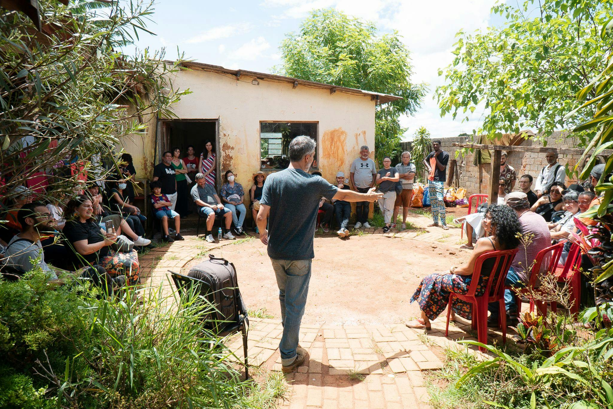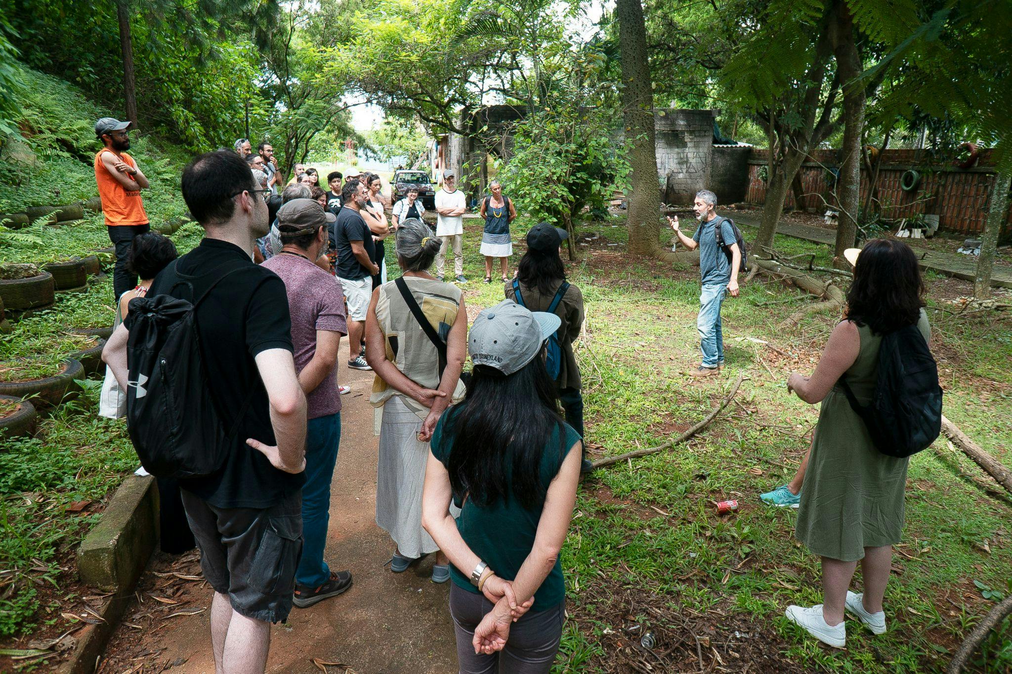 Todo o papo introdutório se deu em uma espécie de clareira, na qual havia uma roda de cadeiras e um café da manhã sendo servido na casa dos fundos. Luciano havia convidado as pessoas presentes para se reunir ali.