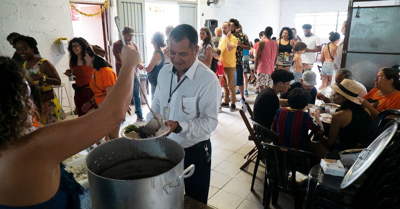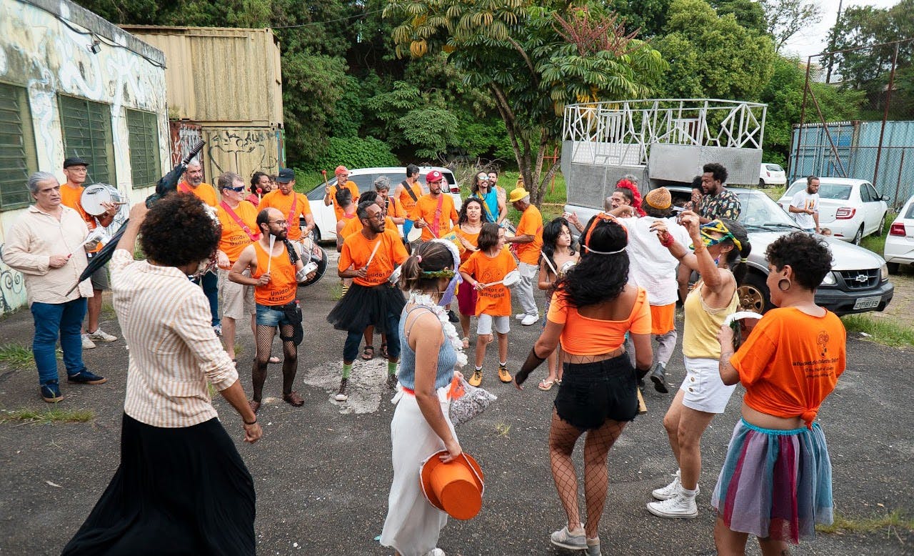 Uma vez terminados os relatos, todos ali presentes começaram a circular livremente pelo espaço. Reencontrar velhos conhecidos ou explorar os galpões. Passados alguns minutos, foi anunciada uma grande feijoada. Coincidentemente, todos pararam o que estavam fazendo e se dirigiram correndo ao refeitório. Lá dentro, muito samba, conversa e comida boa. O pessoal do Bloco bebia cerveja e se trajava à caráter do Carnaval. Após o almoço, em pouco tempo lá fora, já eram dispostos os diferentes tipos de percussão que seriam usados para o desfile daquele dia.