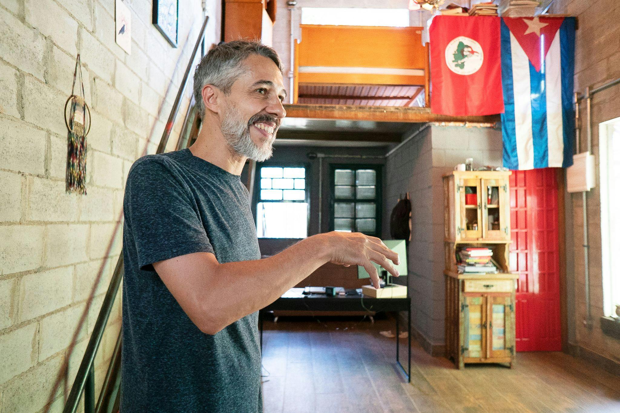 Acontece que ele não foi pago como havia sido combinado e não pôde voltar para casa. O pessoal do Coletivo o recebeu. Uma vez estabelecido, conseguiu entrar em contato com sua universidade, a de Santiago, e retornar para o Chile. Hoje, planeja voltar ao CDC para uma instalação, que é uma releitura do construtivismo russo, — no galpão.