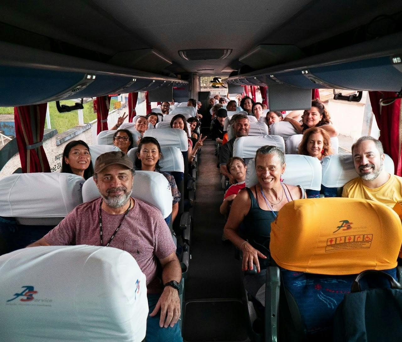 Dentro do ônibus, enquanto não chegávamos ao nosso destino, Edson nos explicava como ocorreriam as atividades naquele dia. Tratava-se de um trabalho de campo com intuito de fazer com que os inscritos do evento vivenciassem aqueles projetos sociais e sentissem os sabores e cheiros dos locais.