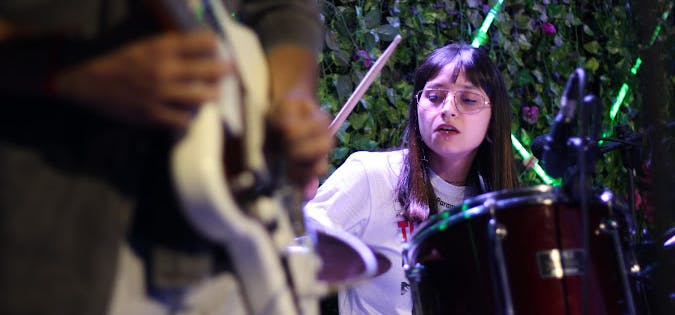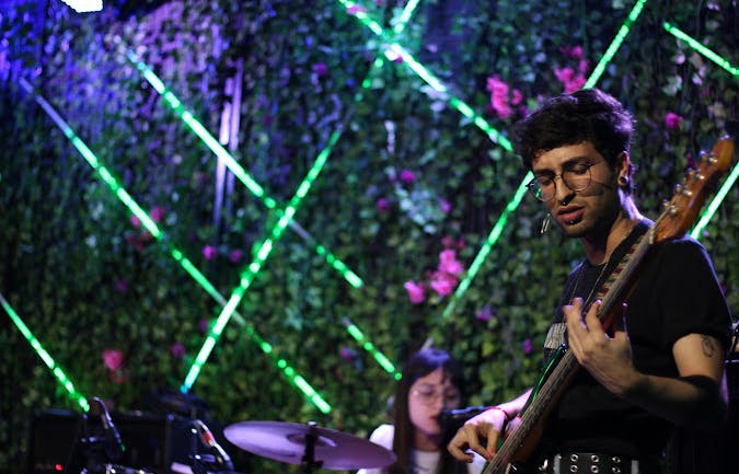 A atmosfera era gostosa de se estar e o ambiente leve, tal qual o processo de criação da banda, descrito como um espaço de muita liberdade criativa. Não à toa, nesse show tocaram uma música surgida esse mês, "Me leva pra casa". Outra possibilidade que um espaço criativo livre dá é a de experimentar timbres e arranjos diferentes. Gabriel contou, "A maioria das músicas ainda estamos testando questão de ritmo e arranjo" e Giulia complementa, "É um laboratório de testar sonoridades, barulhos estranhos".