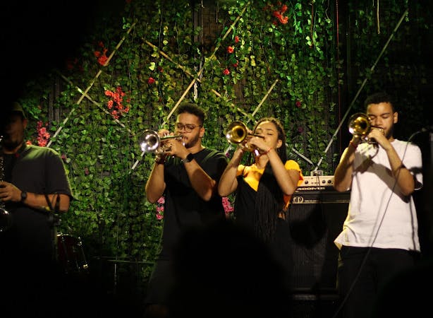 O amarelo ouro dos metais junto ao All Star amarelo vivo de cada um dos integrantes no palco produziam uma parede sonora brilhante, densa, diversa, poderosa e deslumbrante. A melodia e harmonia dividida entre trompetes, trombones, trompa e saxofone, o ritmo na percussão -que por sinal, era dividida, havendo um músico para caixa e prato e outro para bumbo e agogo - e o baixo na tuba criavam uma cama sonora suficiente para se reconhecer a música e cantar junto.