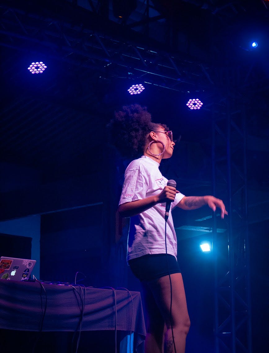O ambiente é extremamente intimista. Dava pra ver que Nabru estava cercada de pessoas queridas. Elas, inclusive, cantam junto enquanto balançam o corpo. Do palco, Nabru compartilha histórias, informa a autoria dos beats, conta curiosidades das músicas. E foi com essa energia que ela veio até nós depois do show para uma breve entrevista.