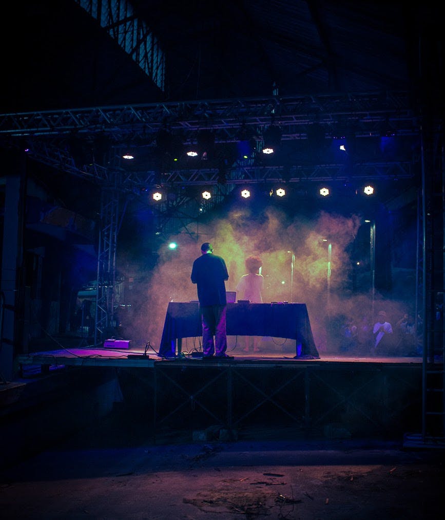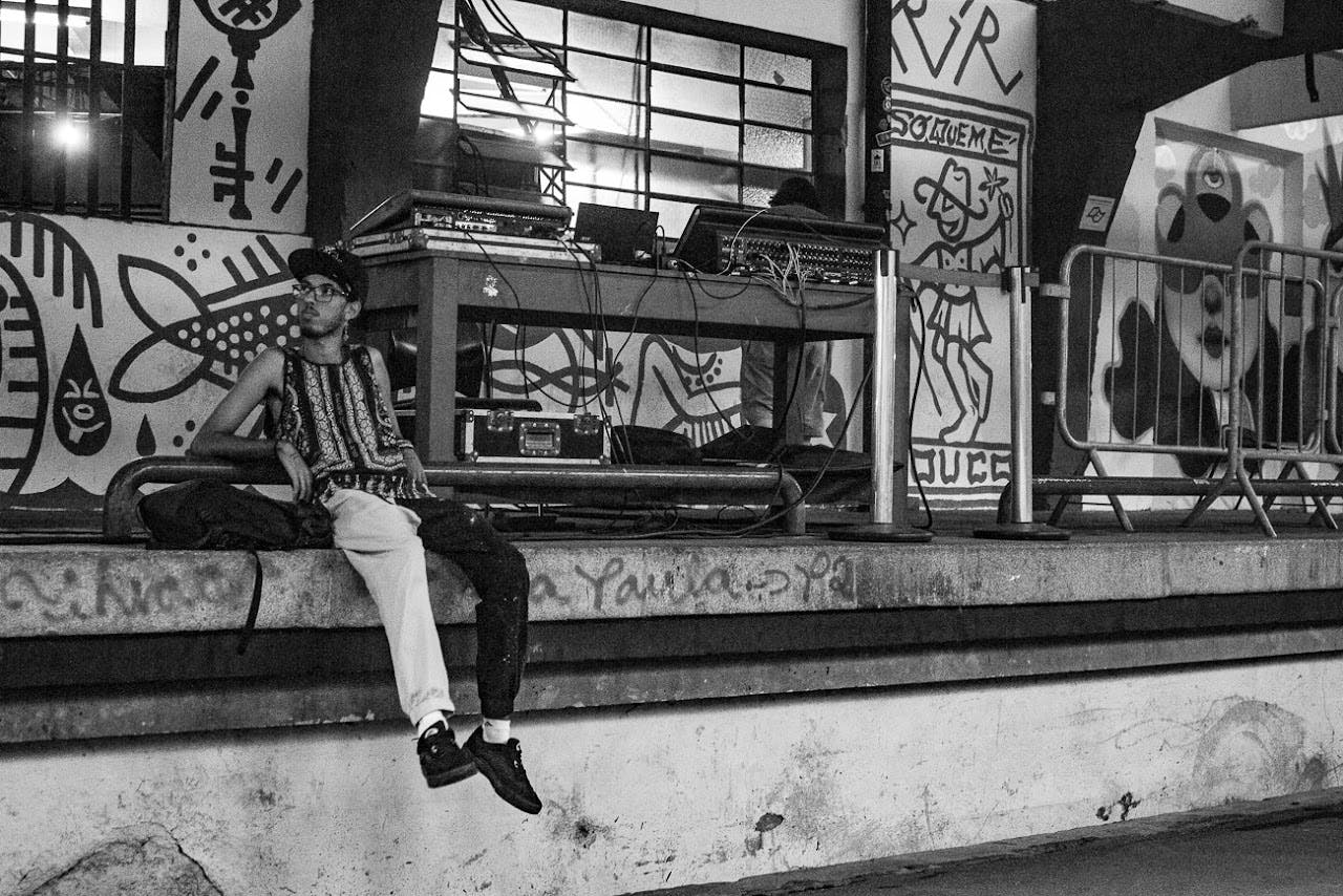 O som chiado combinava com a vibe gostosa do trem passando ao fundo de tempos em tempos. A fumaça cheirava a tutti frutti. Uma mãe segurando a mão de uma criança saindo da escola é chamada pela melodia a entrar e curtir boa parte do show. A música que Nabru traz é gostosa, azul. De olhos fechados, brilha como glitter prateado e traz a sensação de ondas fantasmas pelo corpo depois de um longo dia de praia.