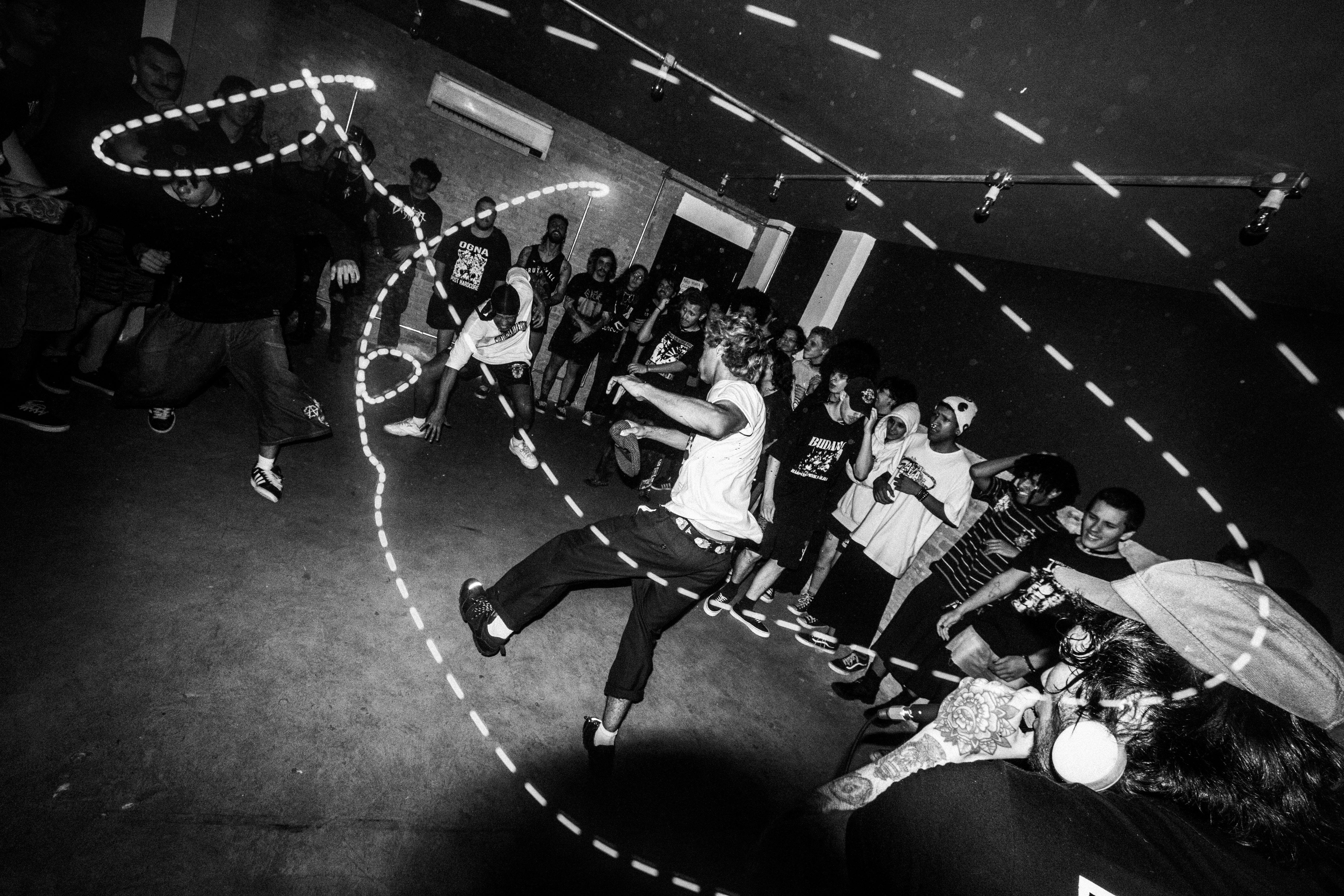 Em uma bela cena de cordialidade, pessoas que não se conheciam estendiam as mãos e se cumprimentavam enquanto elogiavam os passos de dança um do outro, mostrando o poder de união que a cultura underground oferece.